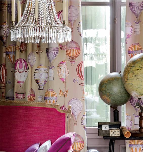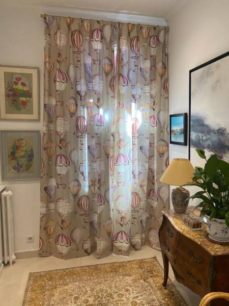 Notre atelier à Aix-en-Provence est spécialisé dans la confection sur mesure de rideaux. Nous avons eu le plaisir d’avoir réalisé ces rideaux avec le tissu d'ameublement L'Envol de l'éditeur Manuel Canovas. Inspiré par le ciel et l'air, ce tissu présente des montgolfières délicatement détaillées, très ornementales, peintes à la main dans une palette de couleurs acidulées. Elles invitent au voyage, donneront du caractère au lieu et se marieront particulièrement bien dans un espace style boudoir ou encore cabinet de curiosité. Manuel Canovas est réputé pour ses créations textiles de grande qualité, élégantes, affirmées, aux couleurs vives, chatoyantes et ses motifs inspirés par la nature et les voyages, donnant à chaque pièce un univers unique et signé.