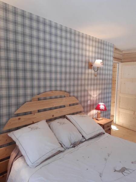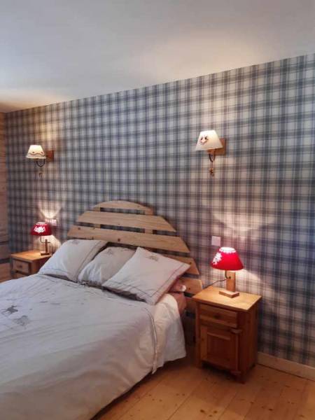 Les murs du chalet du Vercors ont été recouverts avec une étoffe en laine aux motifs écossais communément appelée Tartan.